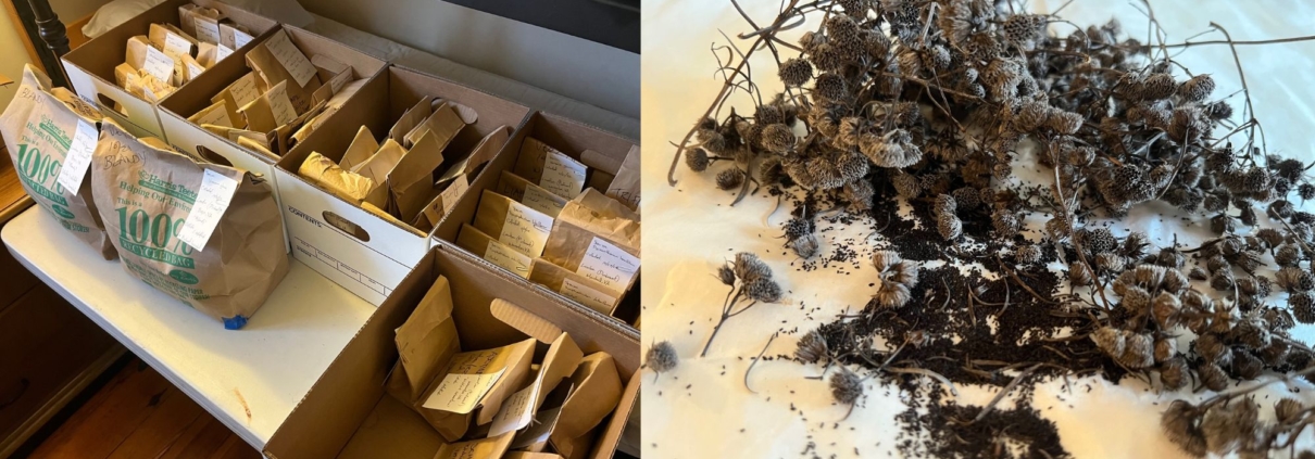 Native Seed Project Coordinator Isaac Matlock standing in front of a portion of the seeds collected this season.