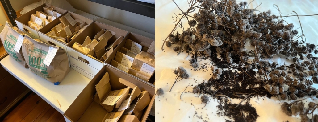 Native Seed Project Coordinator Isaac Matlock standing in front of a portion of the seeds collected this season.