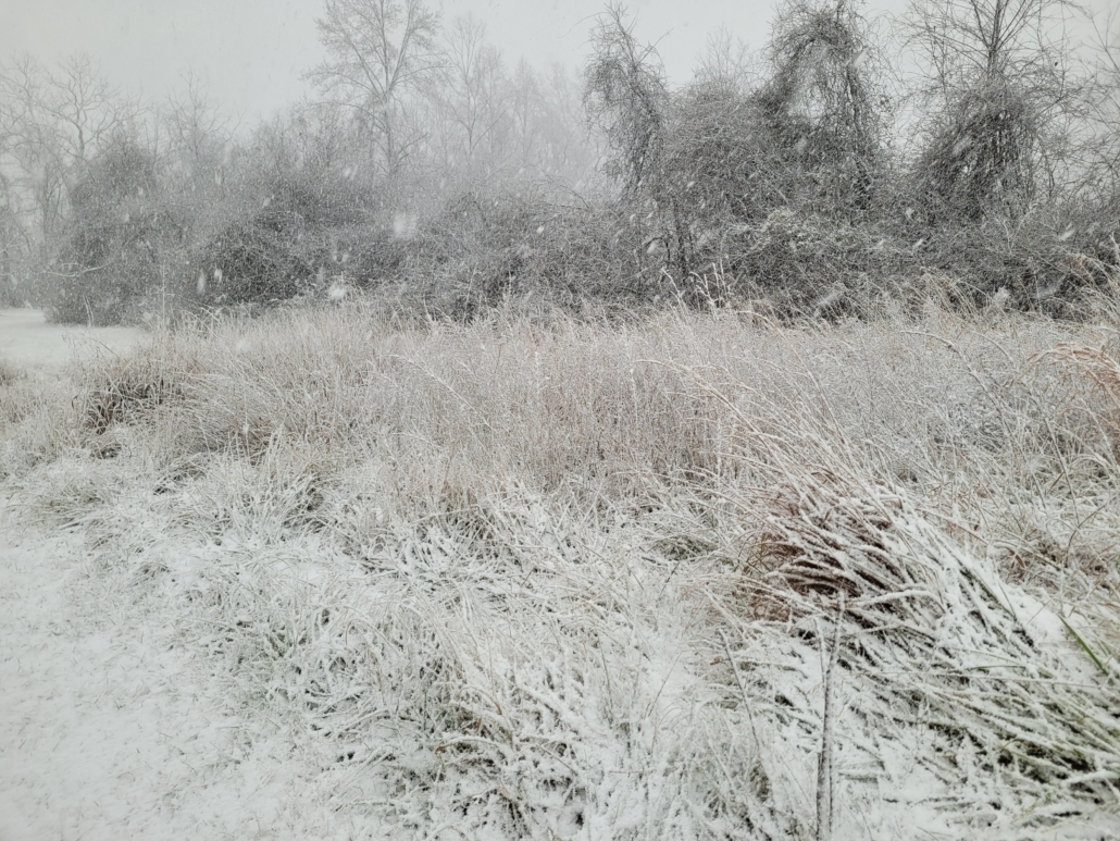 Despite the excitement of this latest storm, I would like to turn everyone’s attention to the brief but incredible blast of winter that occurred two days prior to the big storm. Friday, January 3rd began as a partly to mostly sunny day. It was cold early on, but the sun warmed up the ground throughout the day and by the afternoon ambient temperatures were well above freezing. I was out on the Big Hickory Trail scouting for the all-day hike the next day, sweating in my jacket, when the sky suddenly grew quite dark. Were we about to get a repeat of the highly anomalous severe thunderstorm event we saw on New Year’s Eve? Indeed, a sudden wind gust swept through as it might on a hot June afternoon in advance of summer storm. Instead of a warm rain, this gust front was bearing a burst of heavy snow. Soon the trees around me were obscured in the white-out and the ground was rapidly gathering a coating of little snow pellets called graupel. The graupel eventually gave way to a beautiful, fluffy, classic snow cascading out of the sky for about 30 minutes in which time we received a good inch and a half of accumulation.