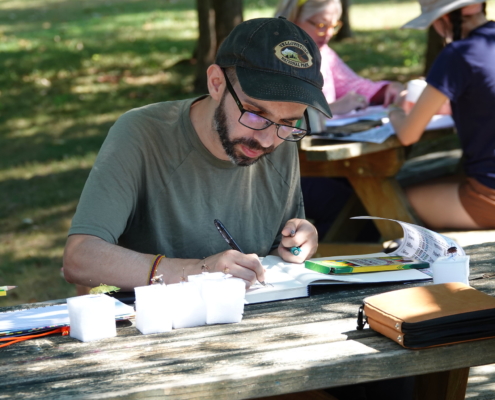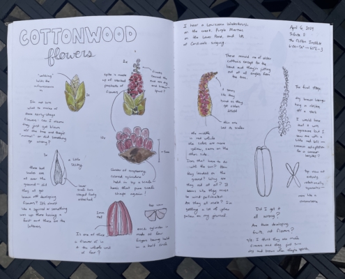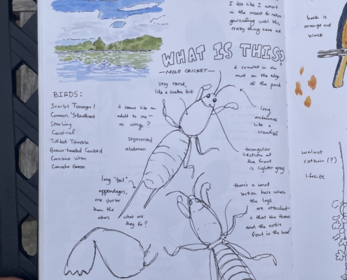 Nature journaling is the practice of sketching and writing outside with the goal of learning about nature. Nature journaling is a powerful tool for learning about plants and animals, a great way to document your discoveries in nature, a mindful practice for connecting to nature, and just a great way to spend time outside. We incorporate nature journaling as much as we can into our education programs, from using it as a reflection tool at the end of field trips to introducing it to our high school Nature Club to ending every day of summer camp with nature journaling time.