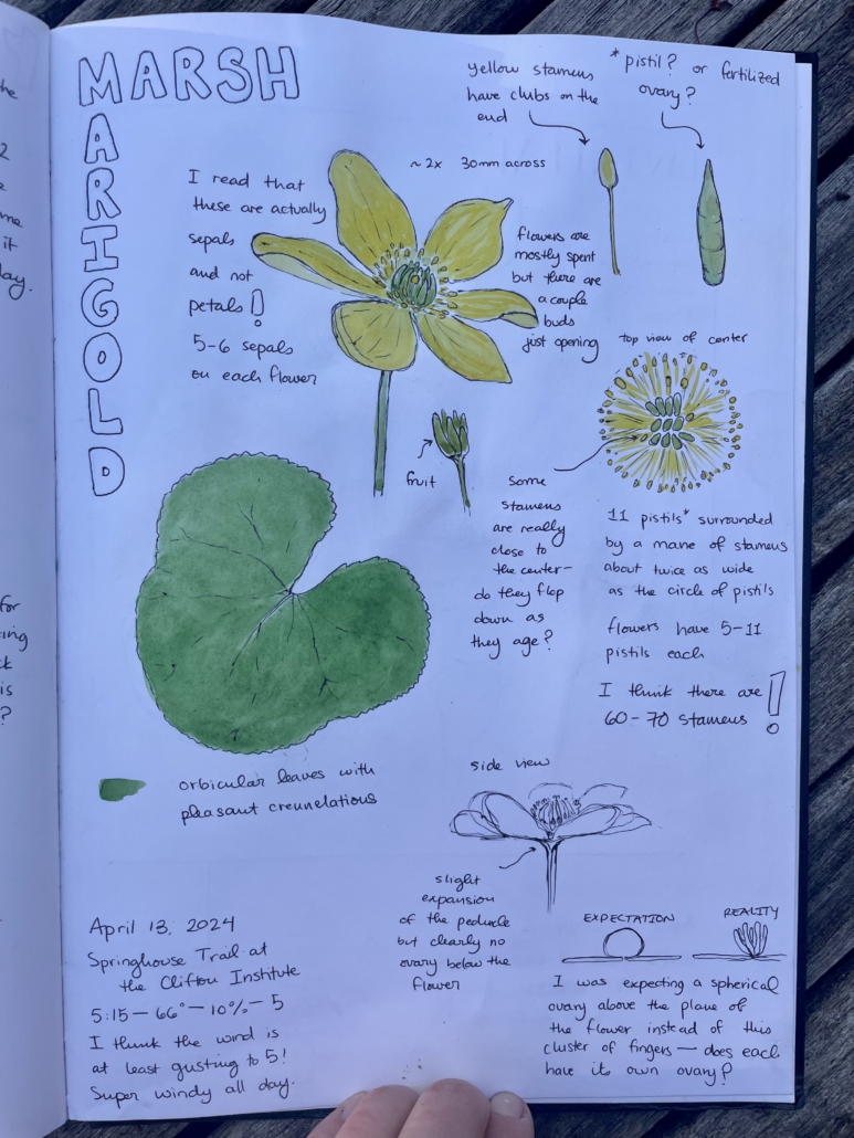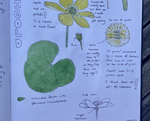 If you’re looking for inspiration, you can find some of Eleanor’s nature journaling pages in the gallery below, as well as on our Instagram page and on her personal Instagram page. You can download a presentation Eleanor gave about nature journaling to the Piedmont Chapter of VNPS here.