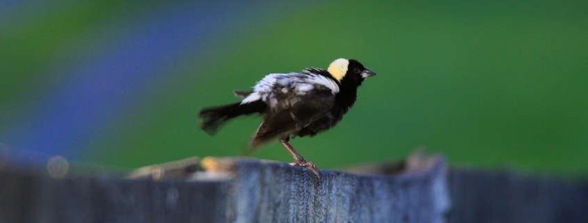 Join us for a visit to an active Bobolink nesting colony! Bobolinks are unique and beautiful birds that select hay fields for nesting. Sadly, they are declining as a result of nest losses from cutting the hay early in the summer. We should enjoy views of adults and fledglings and hear their wonderful song that is reminiscent of R2-D2. The private property we will visit still hosts these wonderful birds because the owners delay haying until the Bobolinks have finished nesting. We should also see a variety of other breeding birds such as Purple Martins, Grasshopper Sparrows, Eastern Meadowlarks, and Blue Grosbeaks. Photos by Amy Johnson.