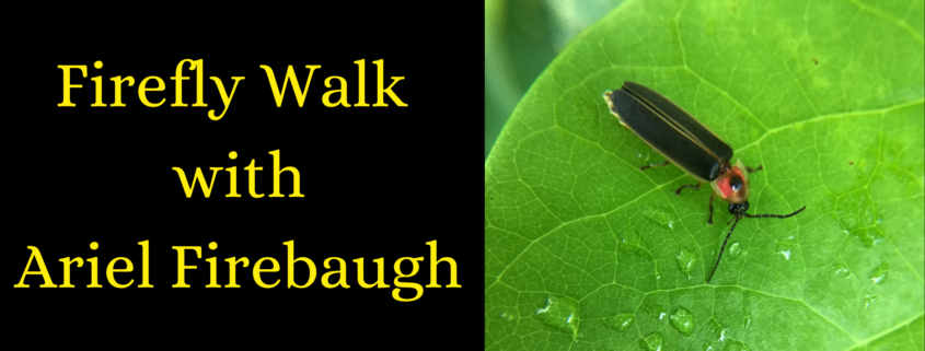 Who doesn’t love fireflies? Many of us have fond memories of catching fireflies or watching a magical light show on a summer evening. But why do fireflies flash? What do they eat? How many species are there? And are fireflies disappearing? Learn all about these fascinating insects with Ariel Firebaugh, firefly researcher and Director of Scientific Engagement at UVA’s Blandy Experimental Farm (Boyce, VA). After a short talk, we’ll walk around grounds, practice identification, and enjoy the light show!