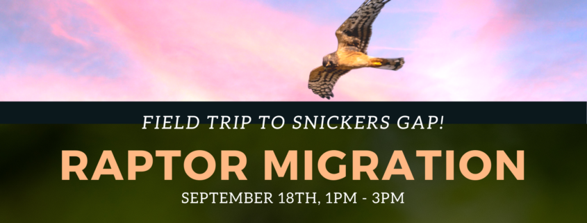 Every fall raptors migrate south along the Appalachian Mountains. Come and witness the peak migration of Broad-winged Hawks. If we’re lucky we might see thousands! Executive Director and ornithologist Bert Harris will lead the group and discuss how to identify raptors in flight. We will meet at Snickers Gap, where there’s an excellent view of migrating raptors and other birds.